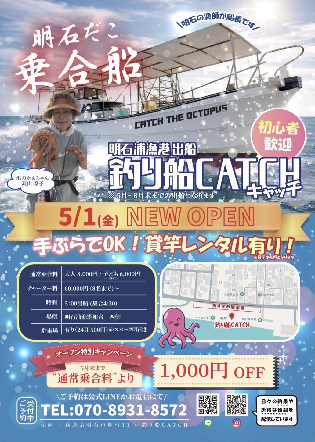 明石浦漁港出船の明石だこ乗合船「釣り船CATCH(キャッチ)」が2026年5月1日(金)にオープンします!