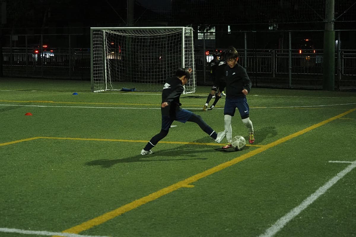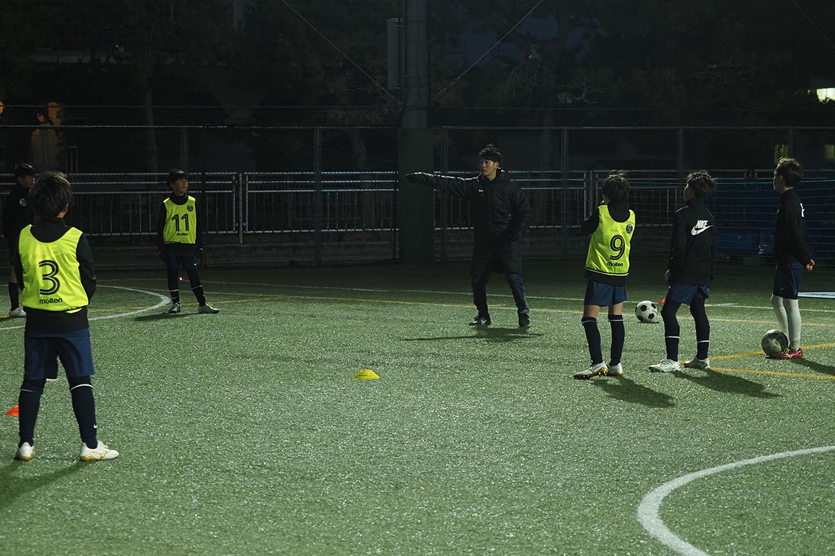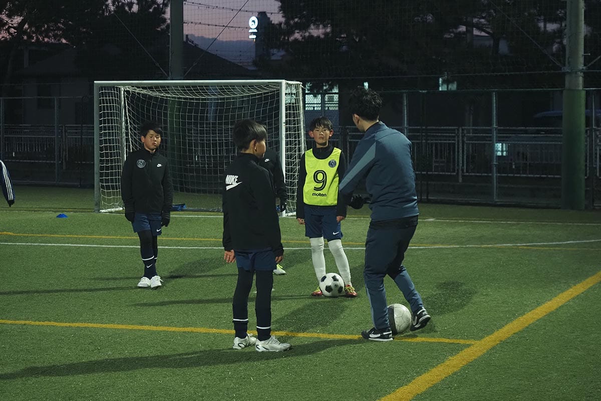 指導ではボールにファーストタッチしたときに考えることや、ボールを持ってからの動きや体の使い方、場面ごとの駆け引きなど、具体的に教えると子どもたちはぐんぐんと吸収してくれるのだとか!