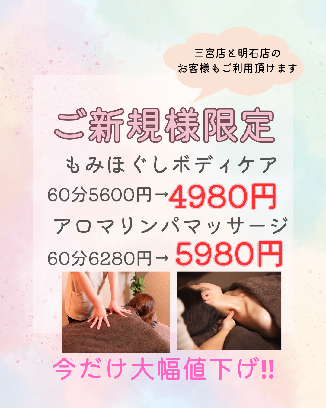 明石駅南側の「魚の棚商店街」内にあるリラクゼーションサロン「YU-SEN明石店」で、新規限定のお得なキャンペーンが実施されています!