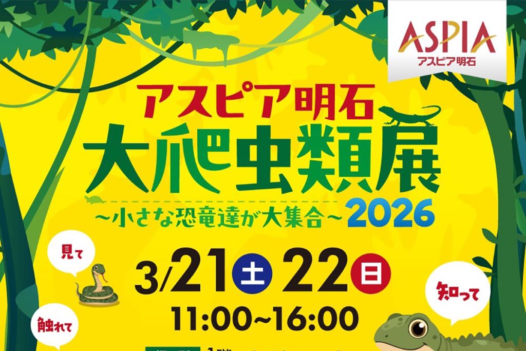 アスピア明石で「アスピア明石大爬虫類展2026 ~小さな恐竜達が大集合~」が3月21日・22日開催!