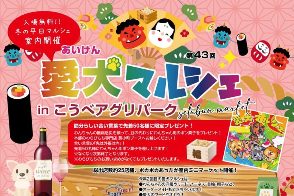 押部谷のこうべアグリパークで「愛犬マルシェ」が2月3日開催!平日の室内開催でのミニマーケット