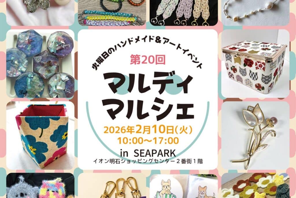 ハレルヨマルシェ JR大久保駅南側にある商業施設「イオン明石ショッピングセンター」2番街1階のSEAPARKで「ハレルヨマルシェ」が2026年1月14日(水)に開催されます! ... -