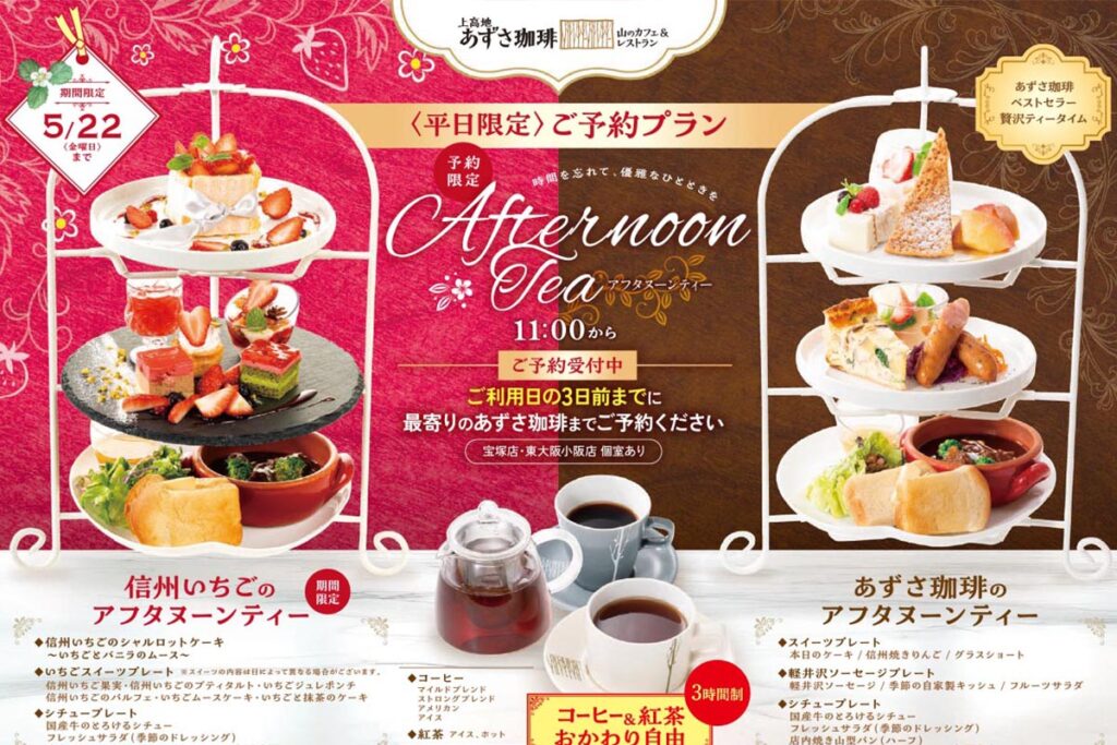 上高地あずさ珈琲全店で平日限定予約制の「信州いちごのアフタヌーンティー」が3月4日からスタート!