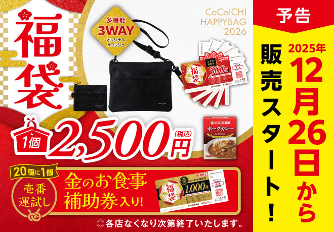 カレーライス専門店チェーン「カレーハウスCoCo壱番屋」で「ココイチ福袋2026」が2025年12月26日(金)から販売されます!
