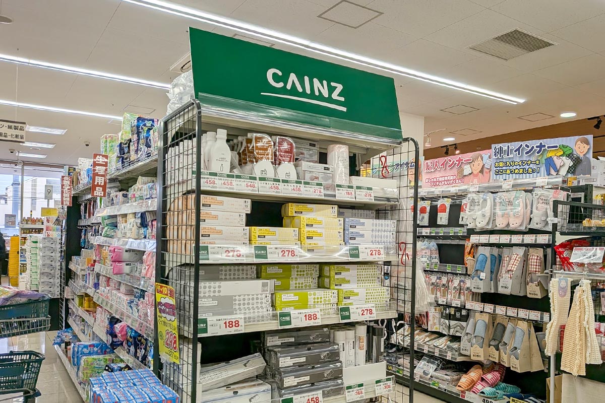実際に店舗を確認してみると、それほど広くはありませんでしたが、カインズ商品のコーナーがありました。キッチン消耗品を中心にカインズの人気商品がラインナップされていますね!